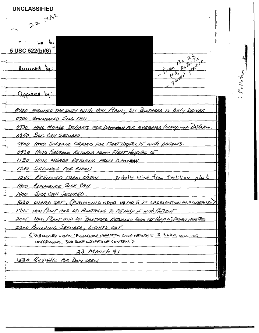 Document 49 f:/Week-37/BX303811/VARIOUS NAVAL MESSAGES FOLDER 4/various journal entries sick call 22 mar 91:0324971041562