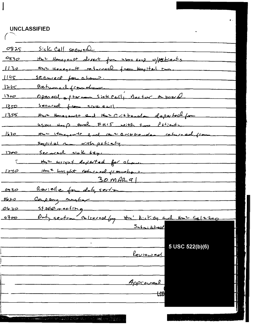 Document 49 f:/Week-37/BX303811/VARIOUS NAVAL MESSAGES FOLDER 4/various journal entries sick call 22 mar 91:0324971041562