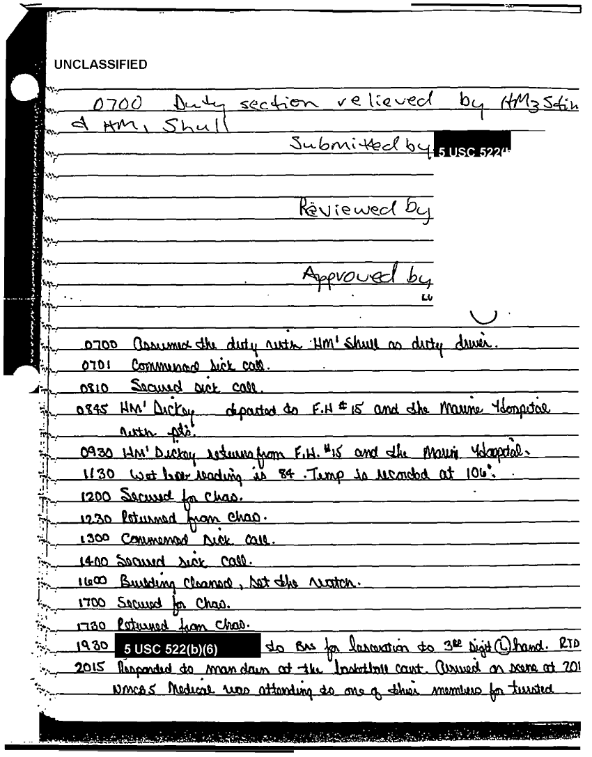 Document 49 f:/Week-37/BX303811/VARIOUS NAVAL MESSAGES FOLDER 4/various journal entries sick call 22 mar 91:0324971041562