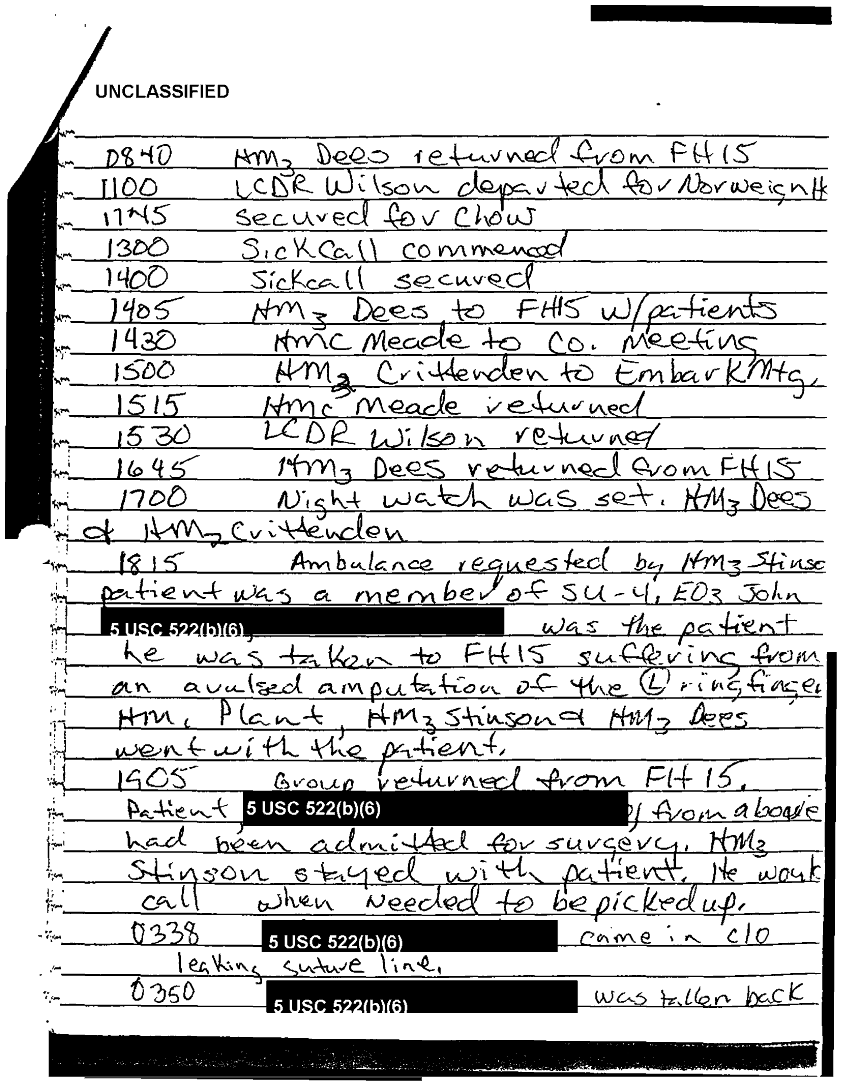 Document 49 f:/Week-37/BX303811/VARIOUS NAVAL MESSAGES FOLDER 4/various journal entries sick call 22 mar 91:0324971041562