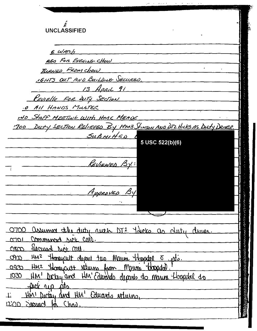 Document 49 f:/Week-37/BX303811/VARIOUS NAVAL MESSAGES FOLDER 4/various journal entries sick call 22 mar 91:0324971041562