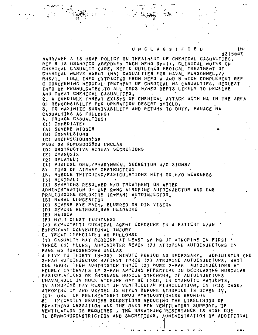 Document 3 f:/Week-56/BX303824/FOLDER 3- MANAGEMENT IN CHEMICAL-BIOLOGICAL WARFARE ENVIRONMENTS/emergency medical treatment of nerve agent casualties:0324971041598