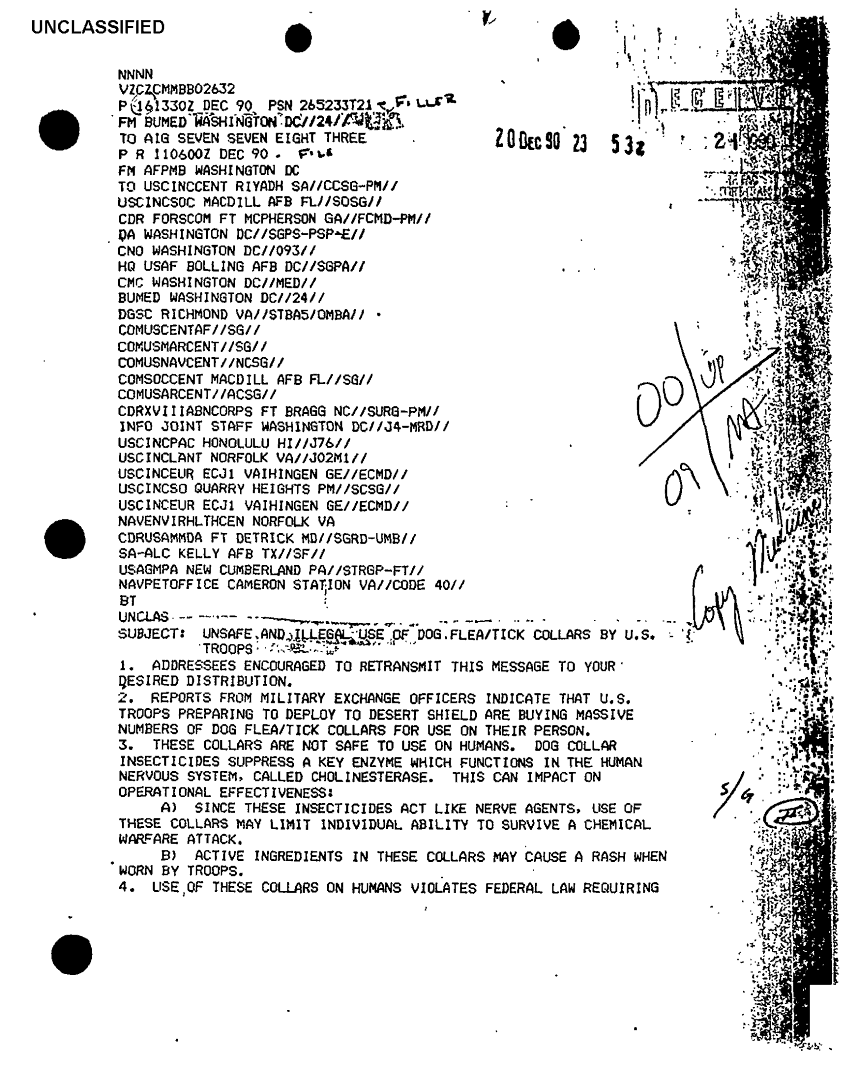 Document 2 f:/Week-38/BX303817/usns comfort tah 20 15-24 dec 90/unsafe and illegal use of dog flea tick collars by us:03249710420011