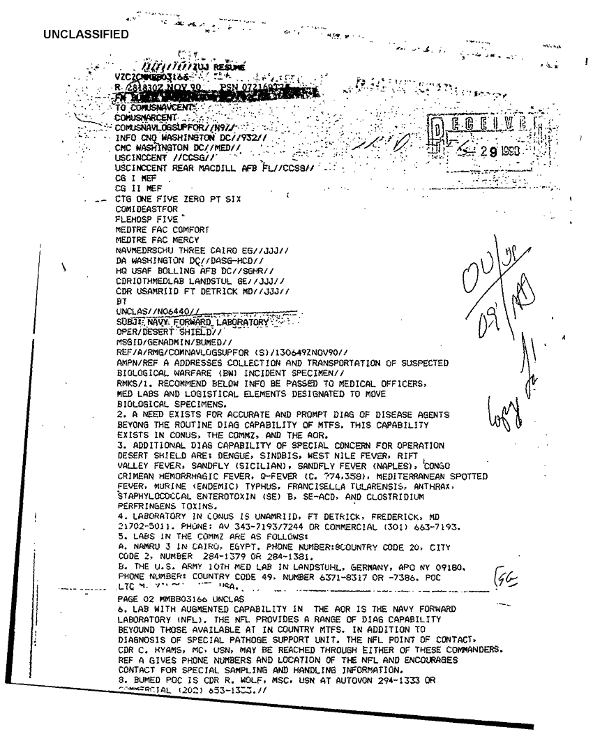 Document 1 f:/Week-38/BX303817/usns comfort tah 20 message traffic 20-28 nov 90/navy forward laboratory 28 nov 90:03249710420112