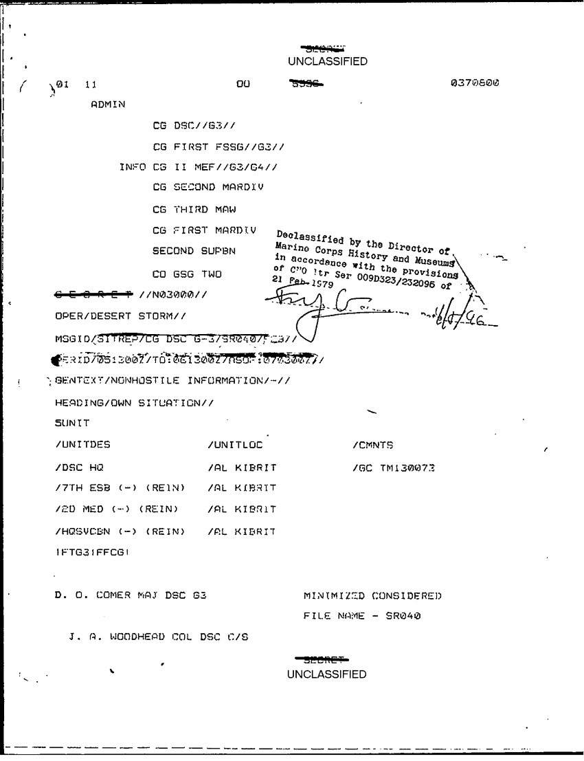 Document 11 f:/Week-34/BX600011/COMMAND CHRONOLOGY DIRECT SUPPORT GROUP 1 DEC - FEB 1991/sitrep cg g 3 sr0040 feb:0913961613533