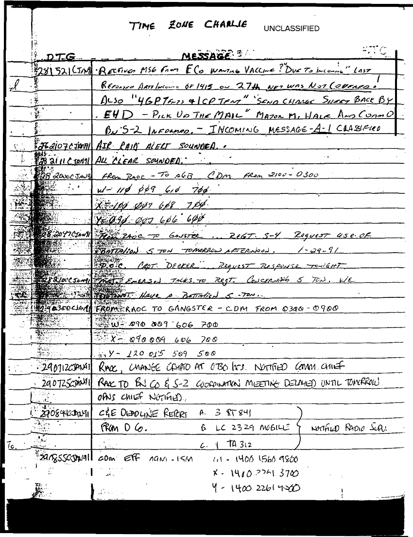 Document 67 f:/Week-35/BX600013/COMMAND CHRONOLOGY 2ND BATTALION 24TH MARINES JAN - MAR 1991 2 OF 2/statement reference s 3 logs 9 jan 1991:0913961614048