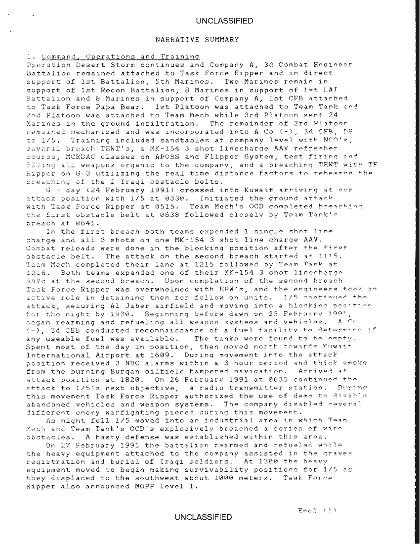 Document 12 f:/Week-35/BX600016/COMMAND CHRONOLOGY A COMPANY COMBAT ENGINEER BATTALION JAN - FEB 1991/command chronology 18 mar 91:0913961614079