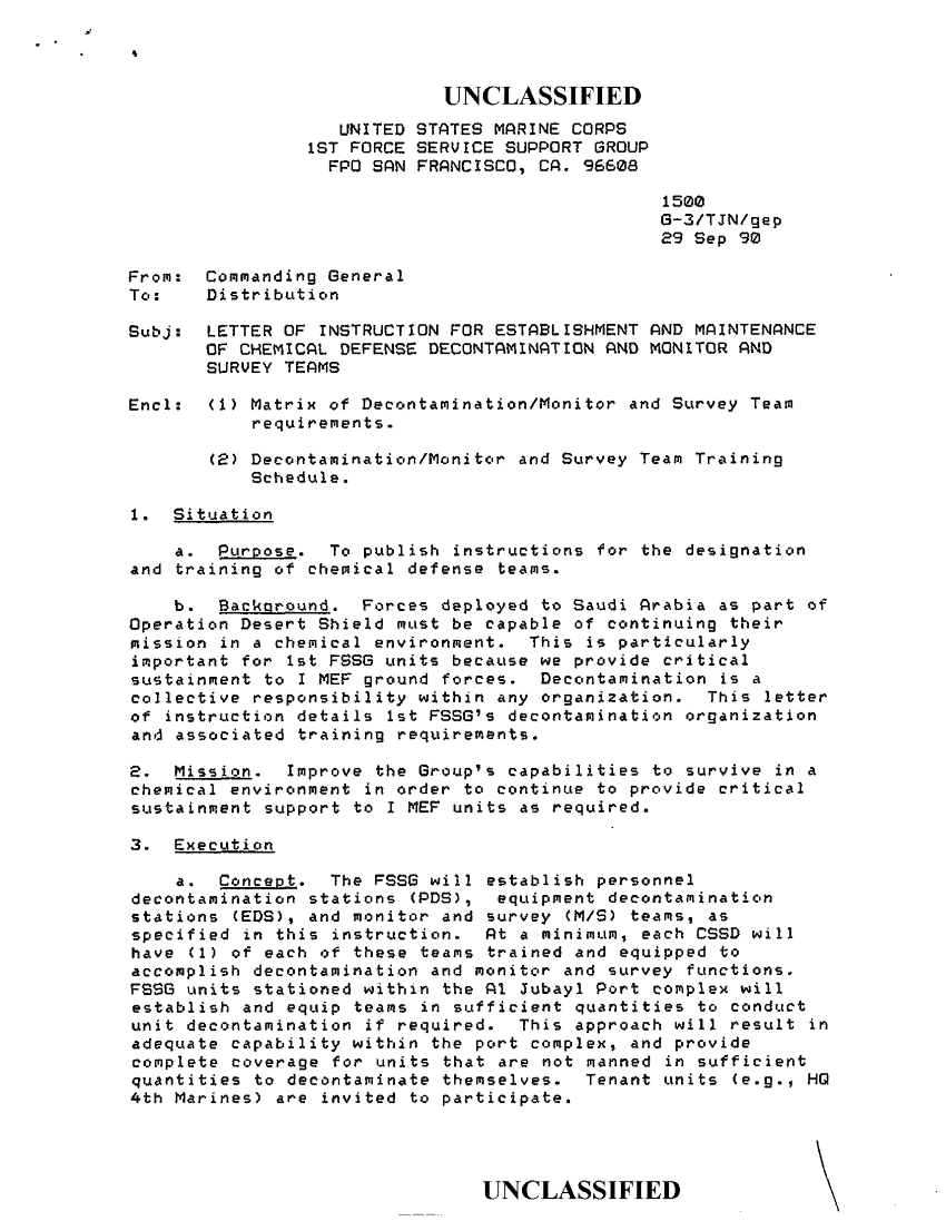 Document 4 f:/Week-34/BX600011/COMMAND CHRONOLOGY 1ST FORCE SERVICE SUPPORT GROUP SEPT 1990/letter of instruction for establishment and main:0906961537278
