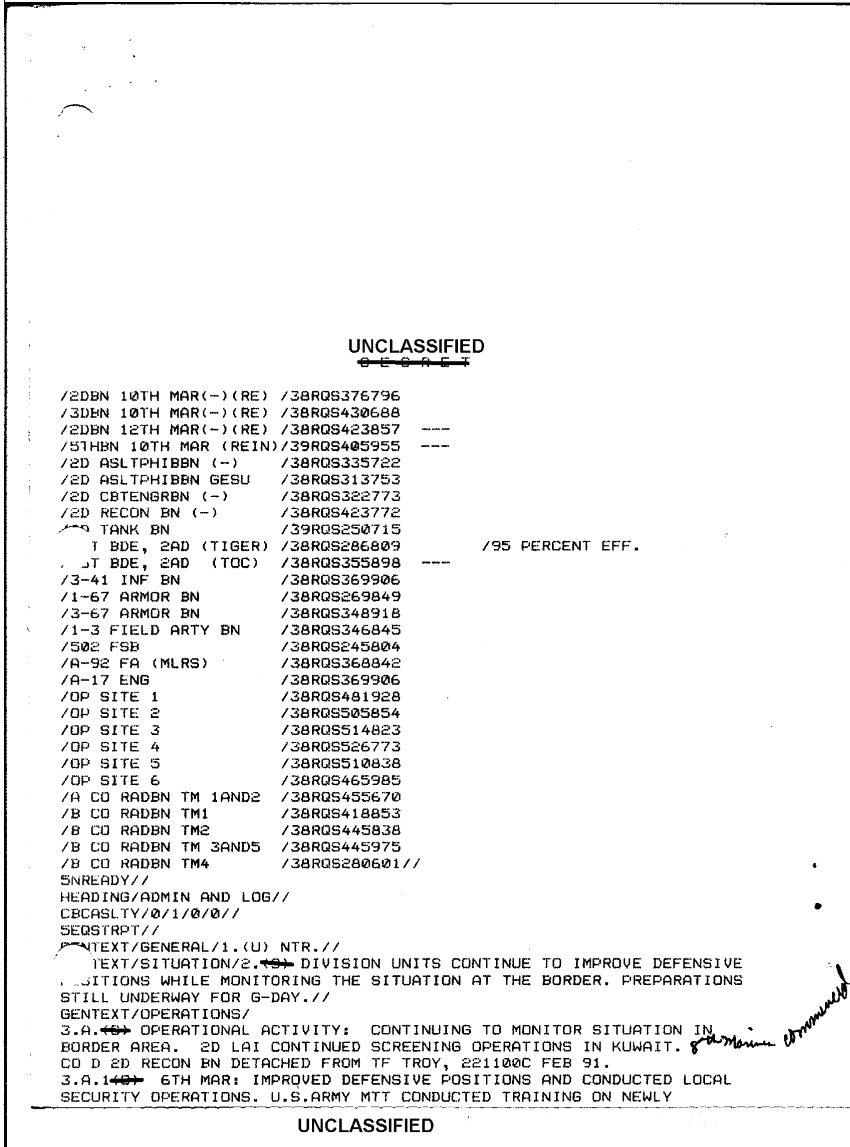 Document 4 f:/Week-35/BX600014/COMMAND CHRONOLOGY 2ND MARINE DIVISION SUPPORTING DOCUMENTS 3 OF 10 JAN - APRIL 1991/situation report feb 91:100196125358
