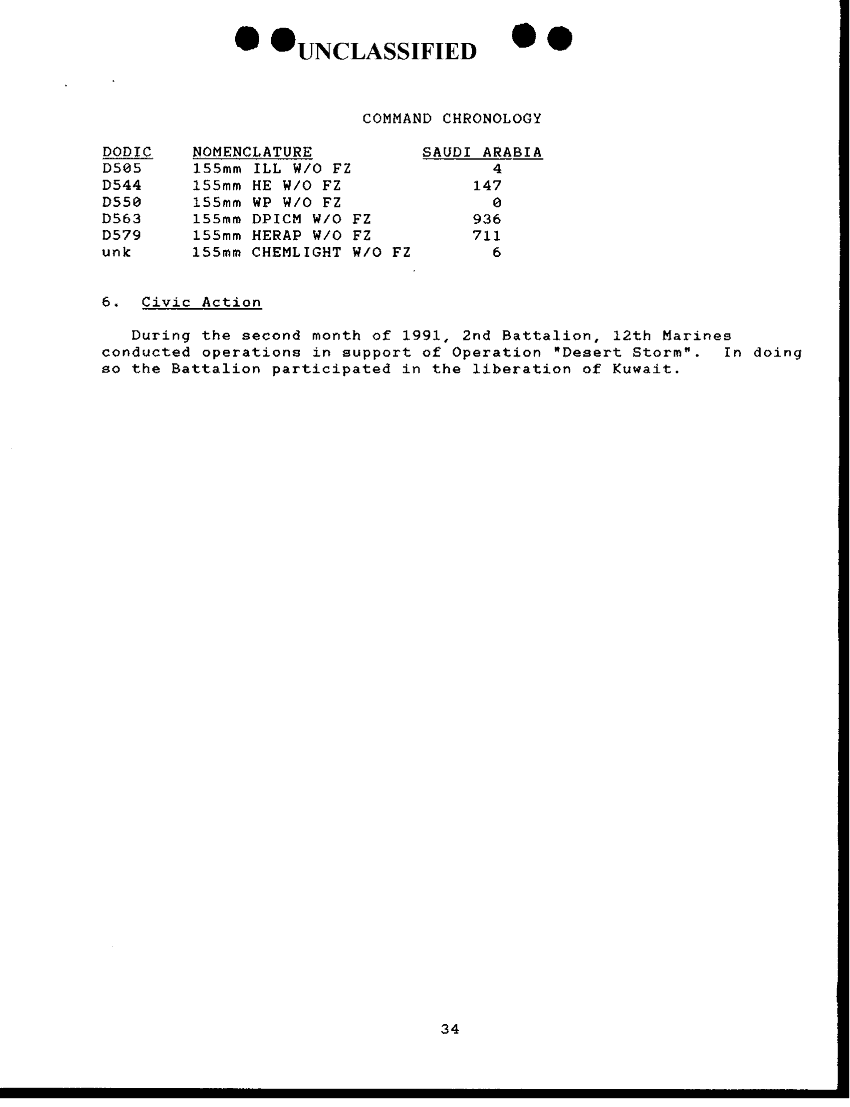 Folder Title = COMMAND CHRONOLOGY 2ND BATTALION 12TH MARINE REGIMENT JUL 90 - JUN 91