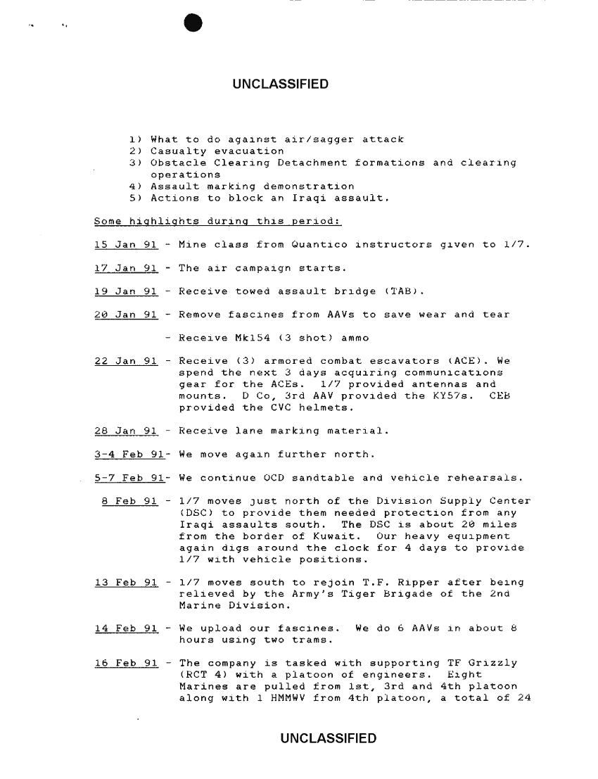 Document 5 f:/Week-38/BX600020/COMMAND CHRONOLOGY 1ST COMBAT ENGINEER BATTALION JAN -JUN 1991/command chronology 1 jan 91 to 28 feb 91 11 m:10049613405717