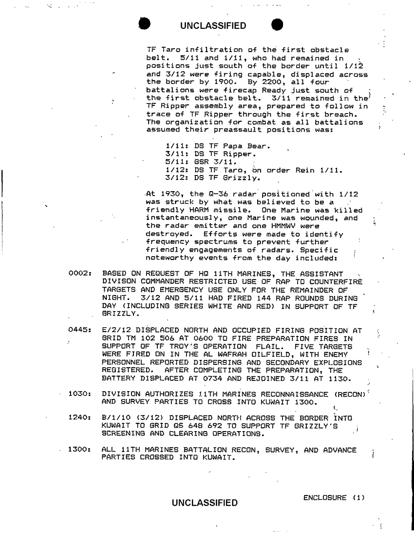 Document 23 f:/Week-36/BX600015/COMMAND CHRONOLOGY 11TH MARINES JAN - JUL 1991/command chronology for 1 jan to 28 feb 91 13 m:10049613410219