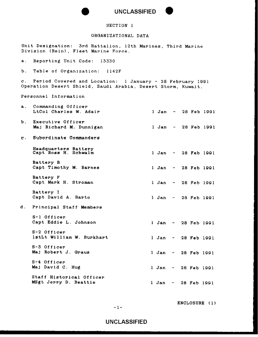 Document 14 f:/Week-38/BX600025/COMMAND CHRONOLOGY 3RD BATTALION 12TH MARINE REGIMENT JAN - JUN 1991/command chronology index:10119615450415