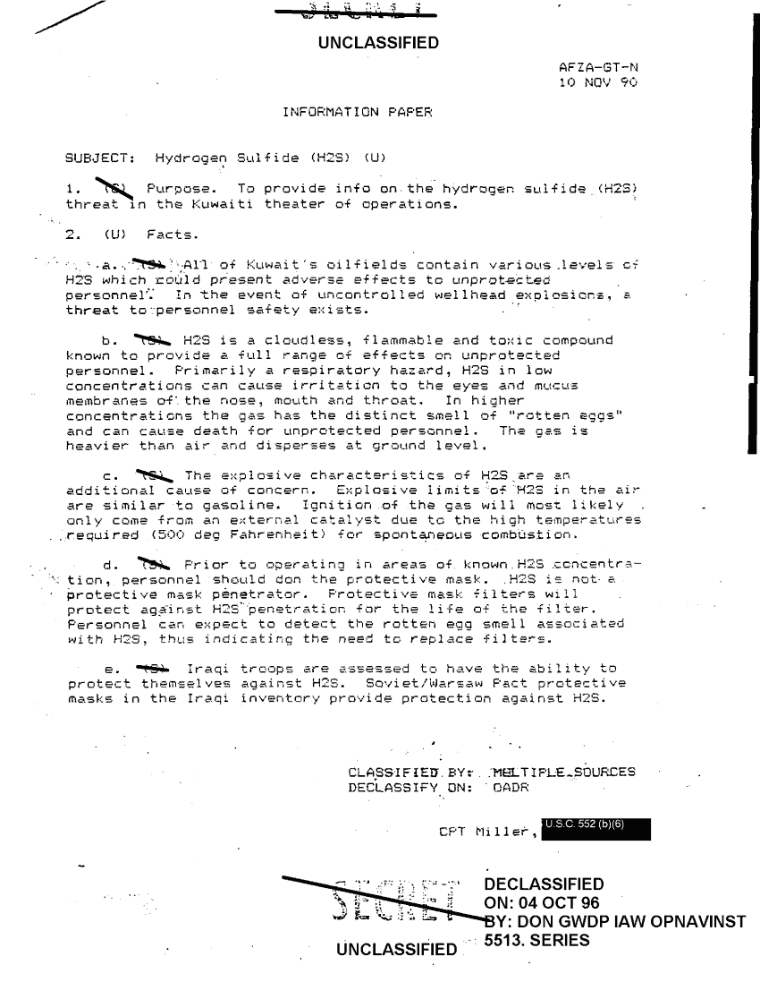 Document 1 f:/Week-38/BX600022/FOLDER 1 INDUSTRIAL CHEMICAL THREAT I MARINE EXPEDITIONARY FORCE CNA 2386/hydrogen sulfide 10 nov 90:10119615450010
