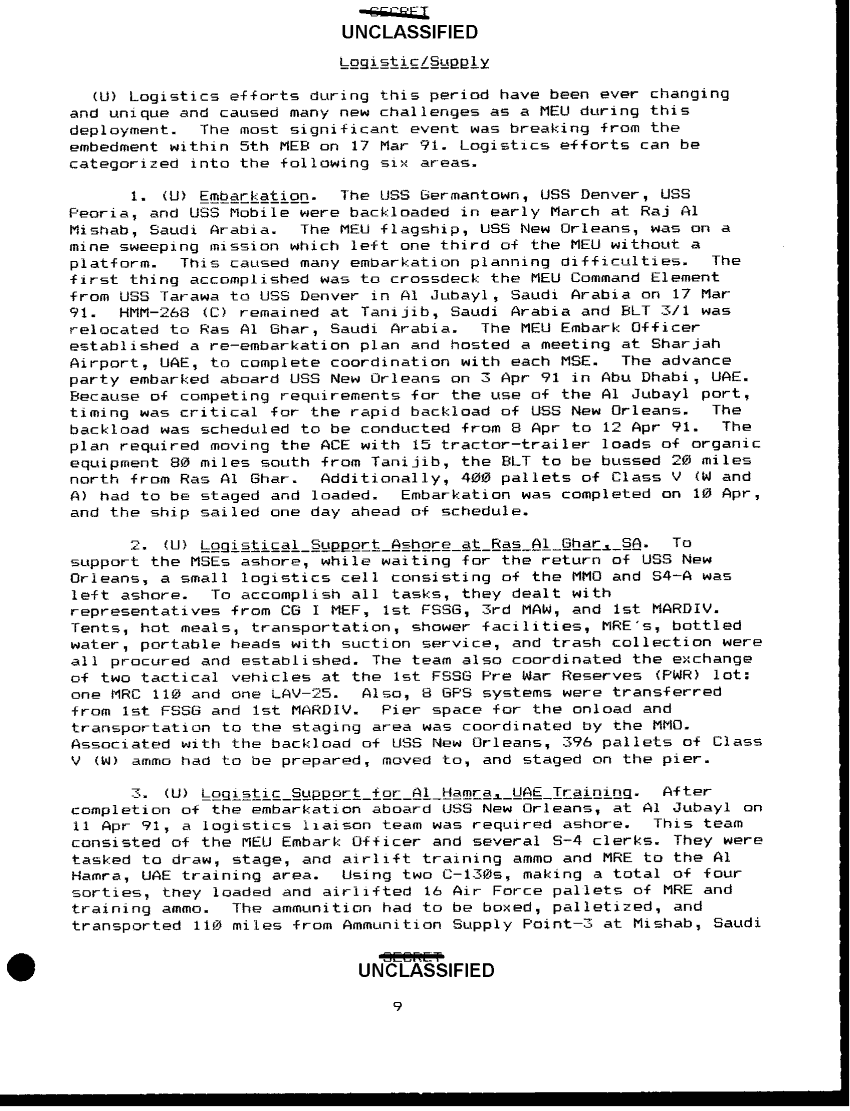 Document 16 f:/Week-38/BX600025/COMMAND CHRONOLOGY 11TH MARINE EXPEDITIONARY UNIT JAN - JUN 1991/command chronology for the period 1 jan 1991 to :1018961454053