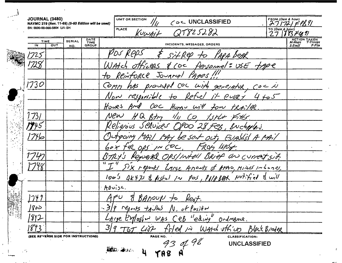 Subject = COMMAND CHRONOLOGY FOR PERIOD 1 JAN TO 28 FEB 91