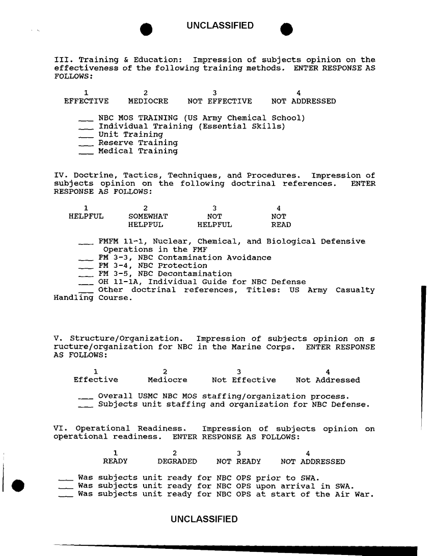 Subject = NUCLEAR BIOLOGICAL AND CHEMICAL DEFENSE SURVEY
