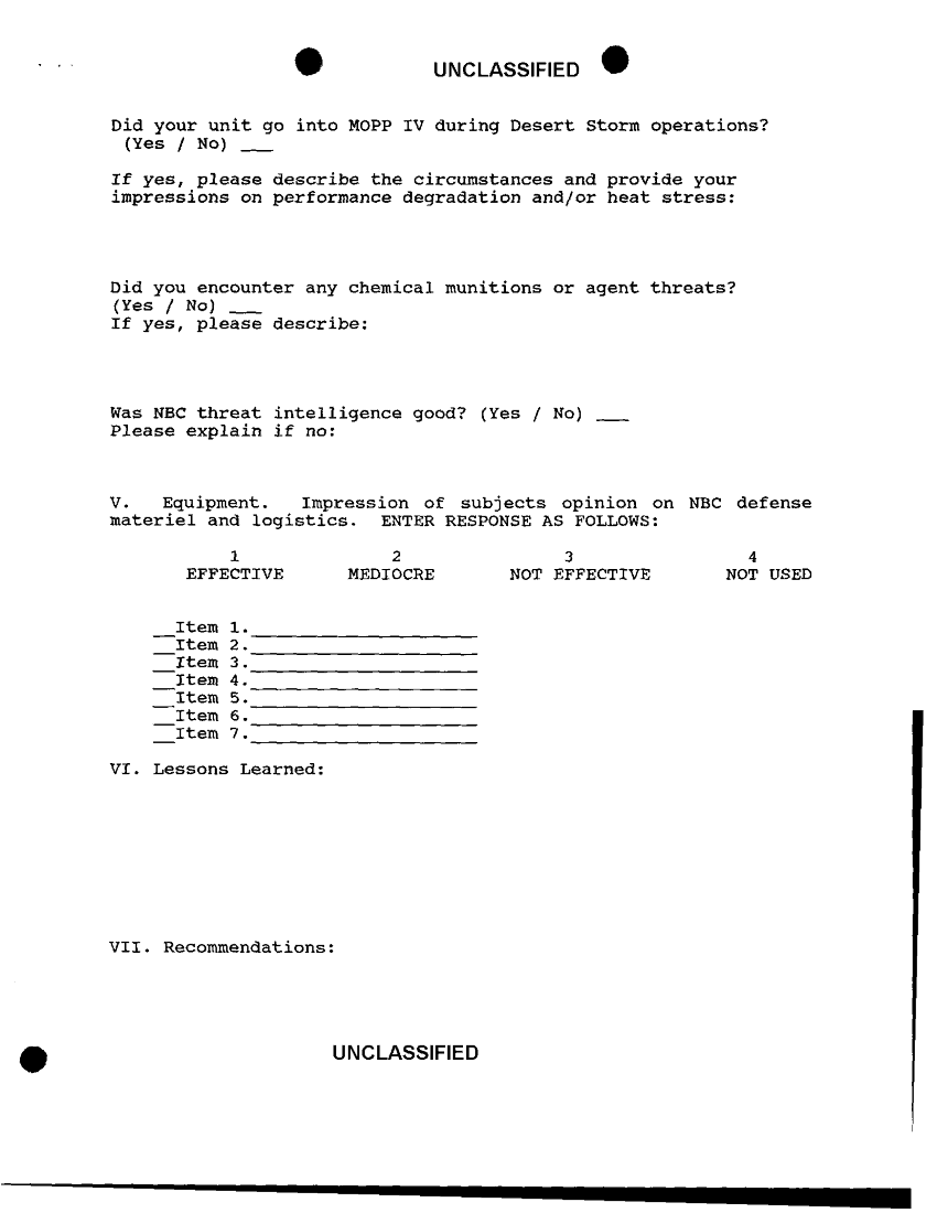 Subject = NUCLEAR BIOLOGICAL AND CHEMICAL DEFENSE SURVEY