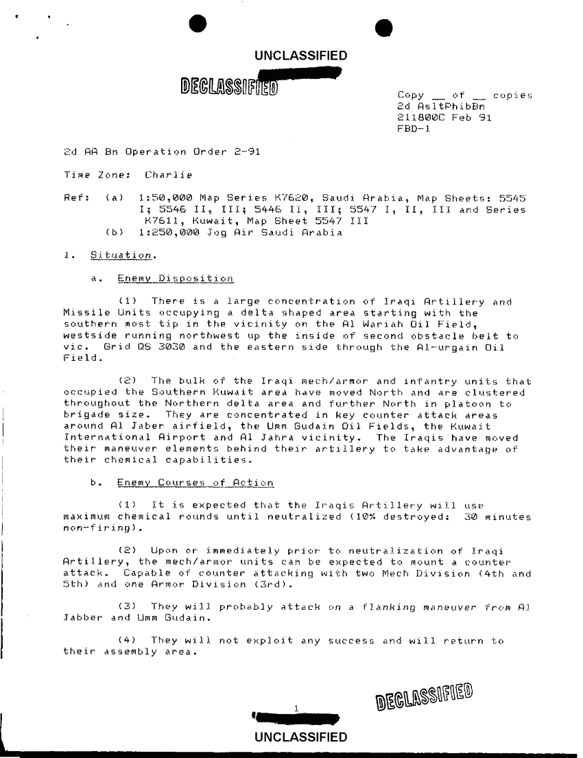 Document 10 f:/Week-42/BX600017/COMMAND CHRONOLOGY 2ND ASSAULT AMPHIBIAN BATTALION JAN - FEB 1991/operation order 2 91:11129615125914
