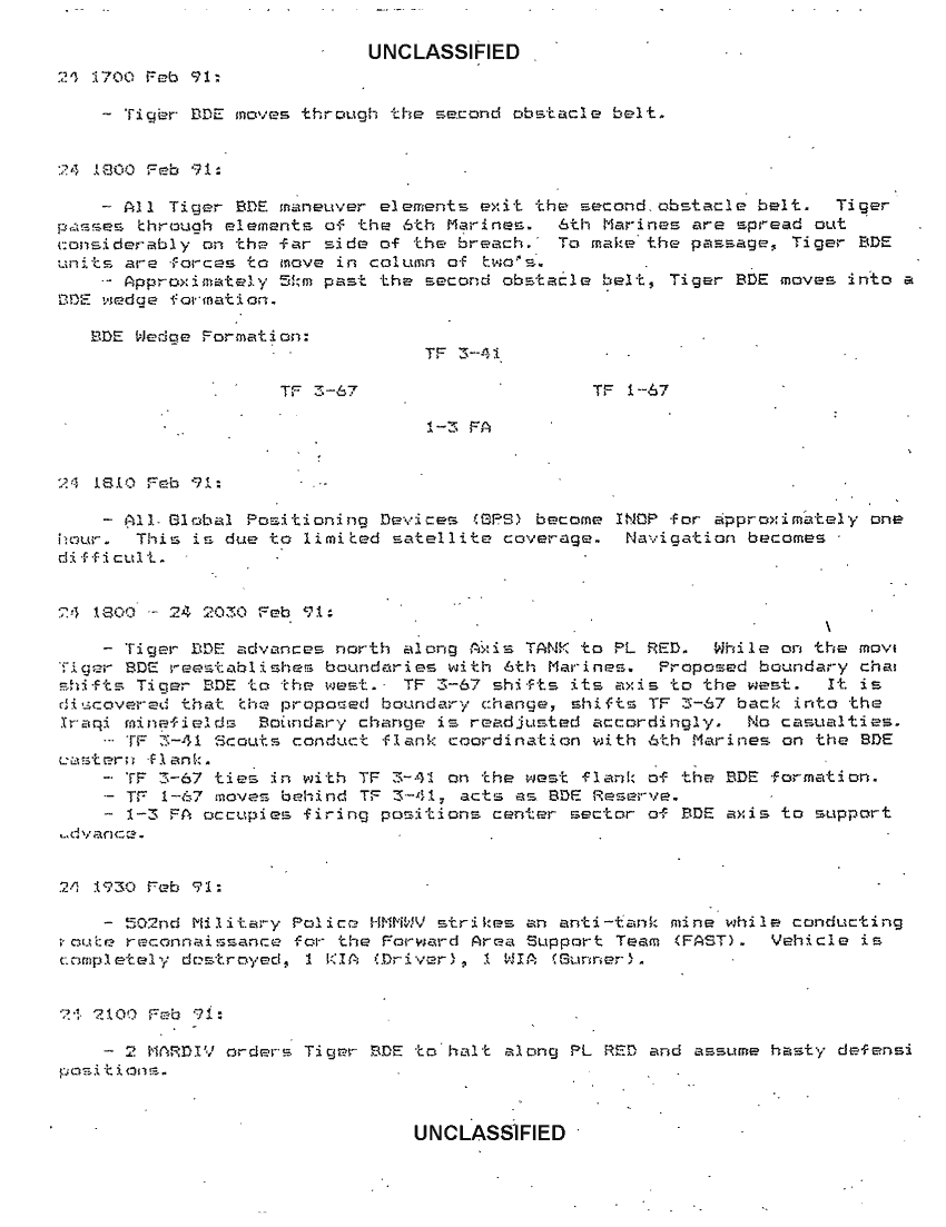 Document 10 f:/Week-42/BX600017/command chronology first brigade 2nd armored division 10 aug 1990 - 1 mar 1991/operations chron 23 feb 91 1 mar 91:11129615130417