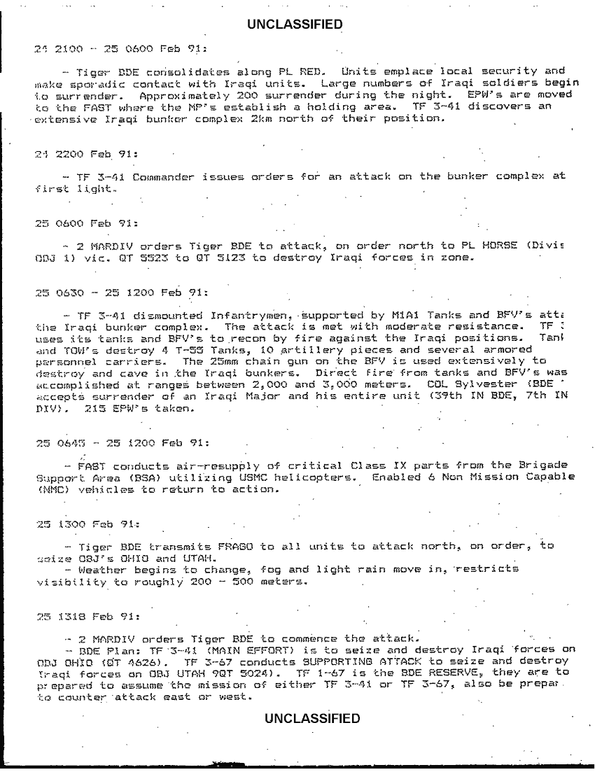 Document 10 f:/Week-42/BX600017/command chronology first brigade 2nd armored division 10 aug 1990 - 1 mar 1991/operations chron 23 feb 91 1 mar 91:11129615130417