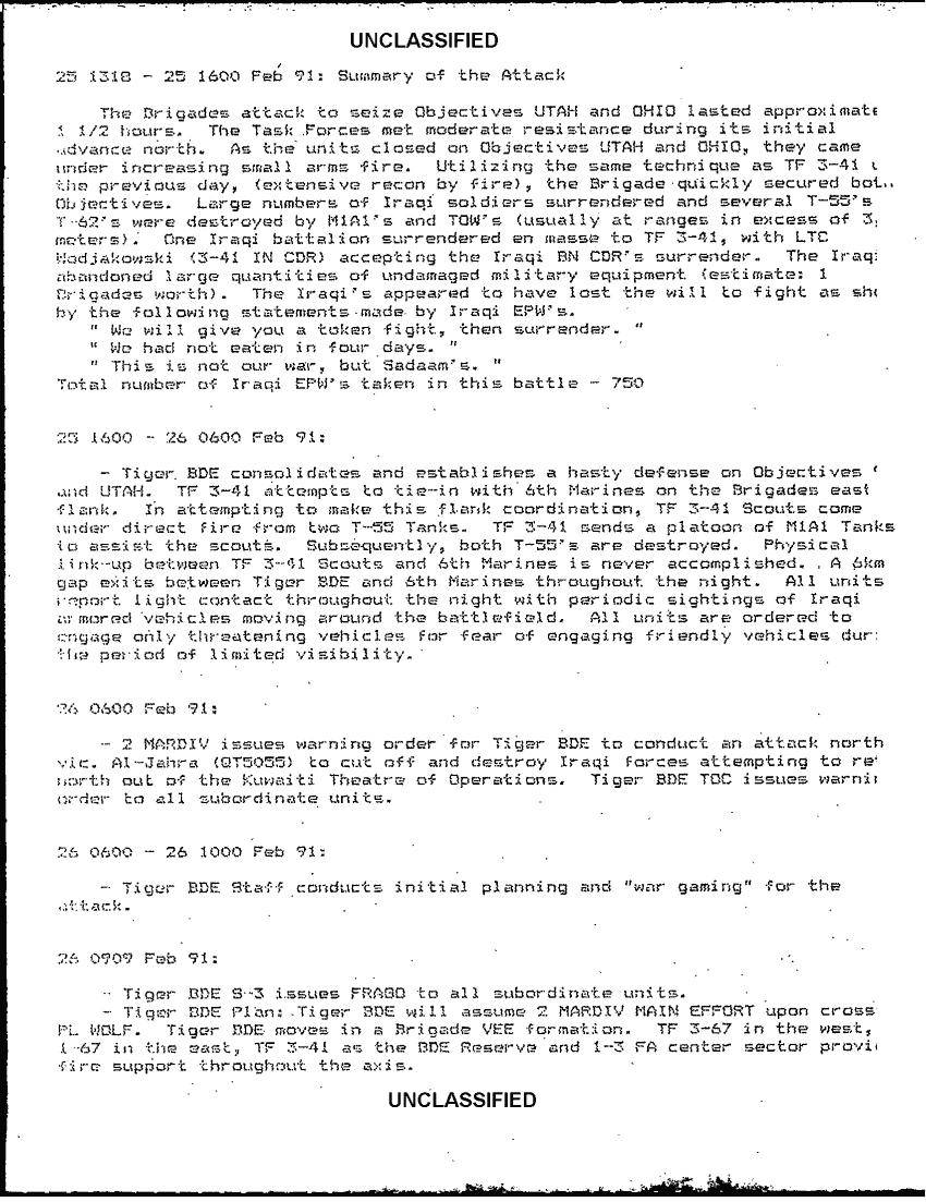 Document 10 f:/Week-42/BX600017/command chronology first brigade 2nd armored division 10 aug 1990 - 1 mar 1991/operations chron 23 feb 91 1 mar 91:11129615130417