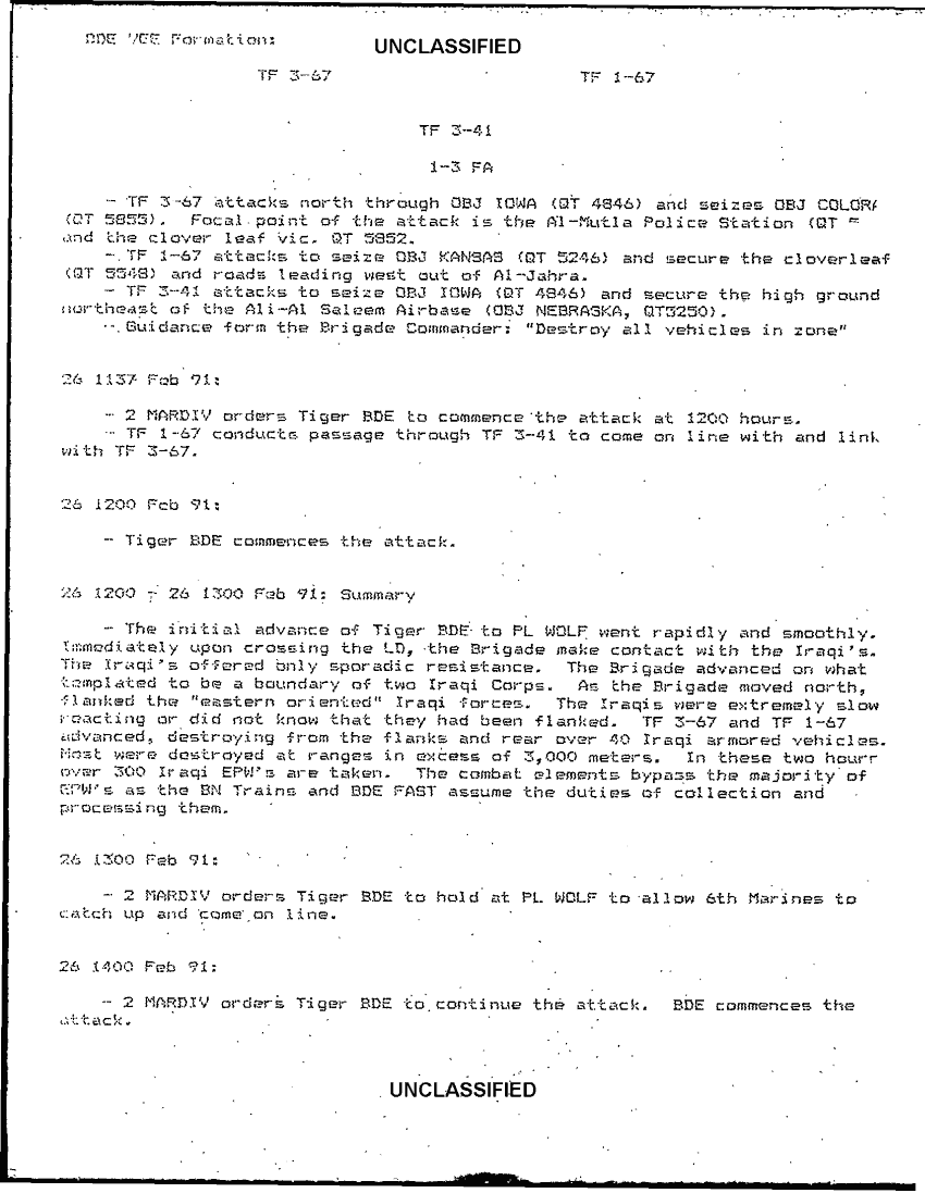 Document 10 f:/Week-42/BX600017/command chronology first brigade 2nd armored division 10 aug 1990 - 1 mar 1991/operations chron 23 feb 91 1 mar 91:11129615130417