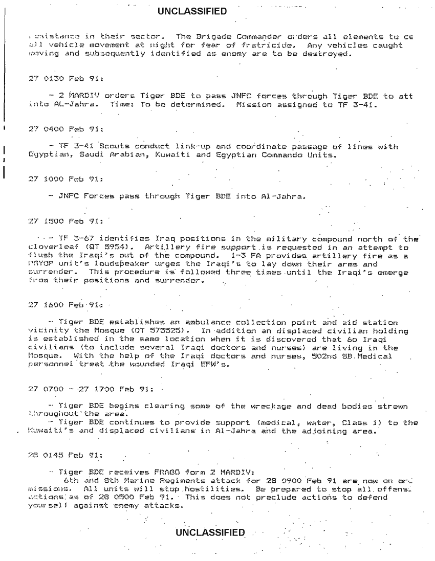 Document 10 f:/Week-42/BX600017/command chronology first brigade 2nd armored division 10 aug 1990 - 1 mar 1991/operations chron 23 feb 91 1 mar 91:11129615130417