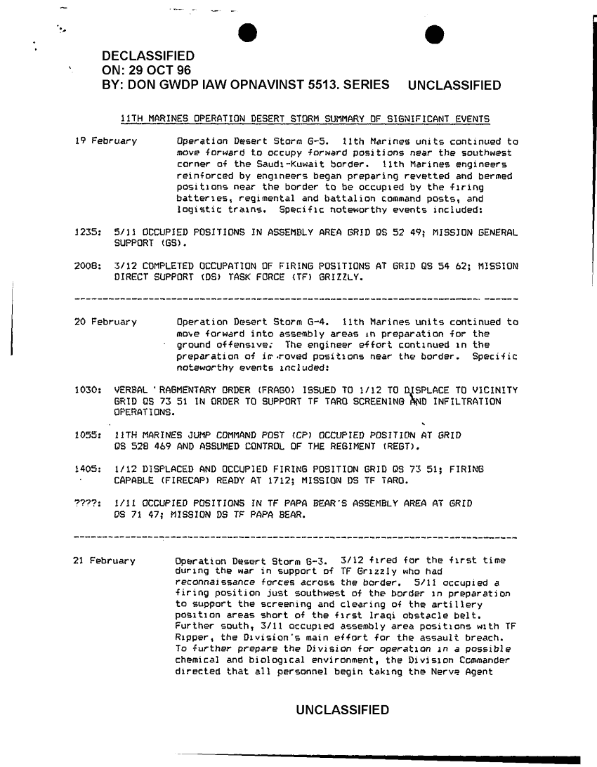 Document 14 f:/Week-42/BX600057/I MEF ACCOUNTS OF COMBAT ACTION/11th marines oper ds summary of significant even:11129615131224