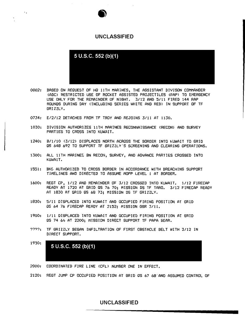 Document 14 f:/Week-42/BX600057/I MEF ACCOUNTS OF COMBAT ACTION/11th marines oper ds summary of significant even:11129615131224