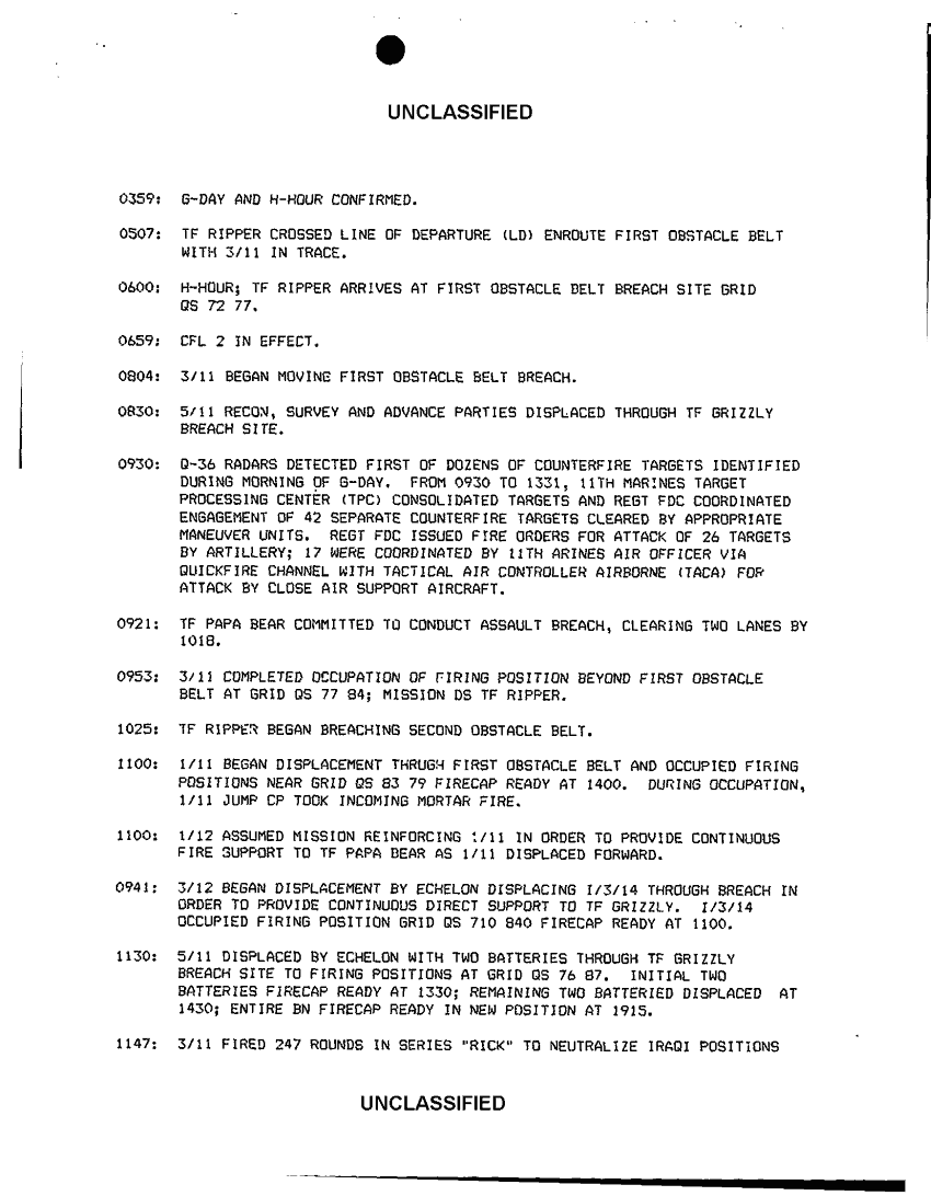 Document 14 f:/Week-42/BX600057/I MEF ACCOUNTS OF COMBAT ACTION/11th marines oper ds summary of significant even:11129615131224
