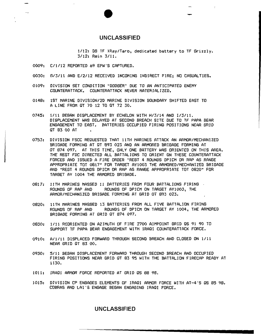 Document 14 f:/Week-42/BX600057/I MEF ACCOUNTS OF COMBAT ACTION/11th marines oper ds summary of significant even:11129615131224