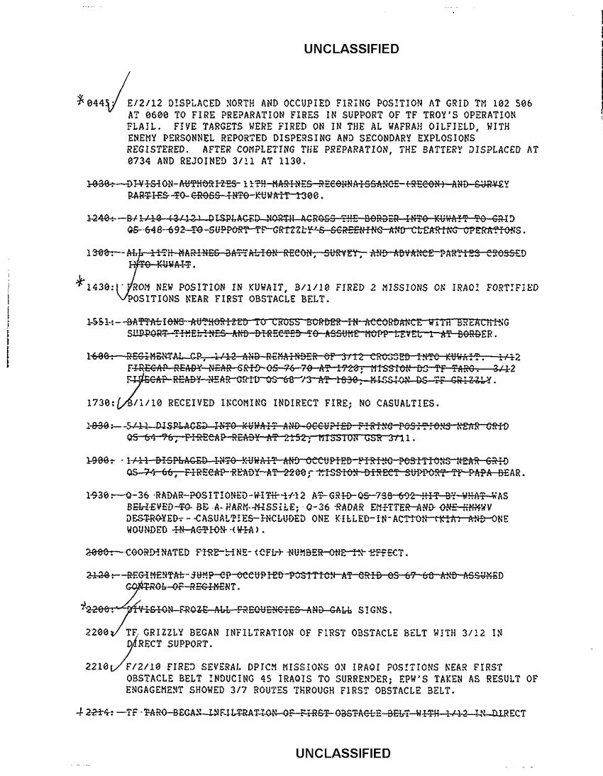 Document 16 f:/Week-42/BX600057/I MEF ACCOUNTS OF COMBAT ACTION/11th marines summary of significant events:1122961652212