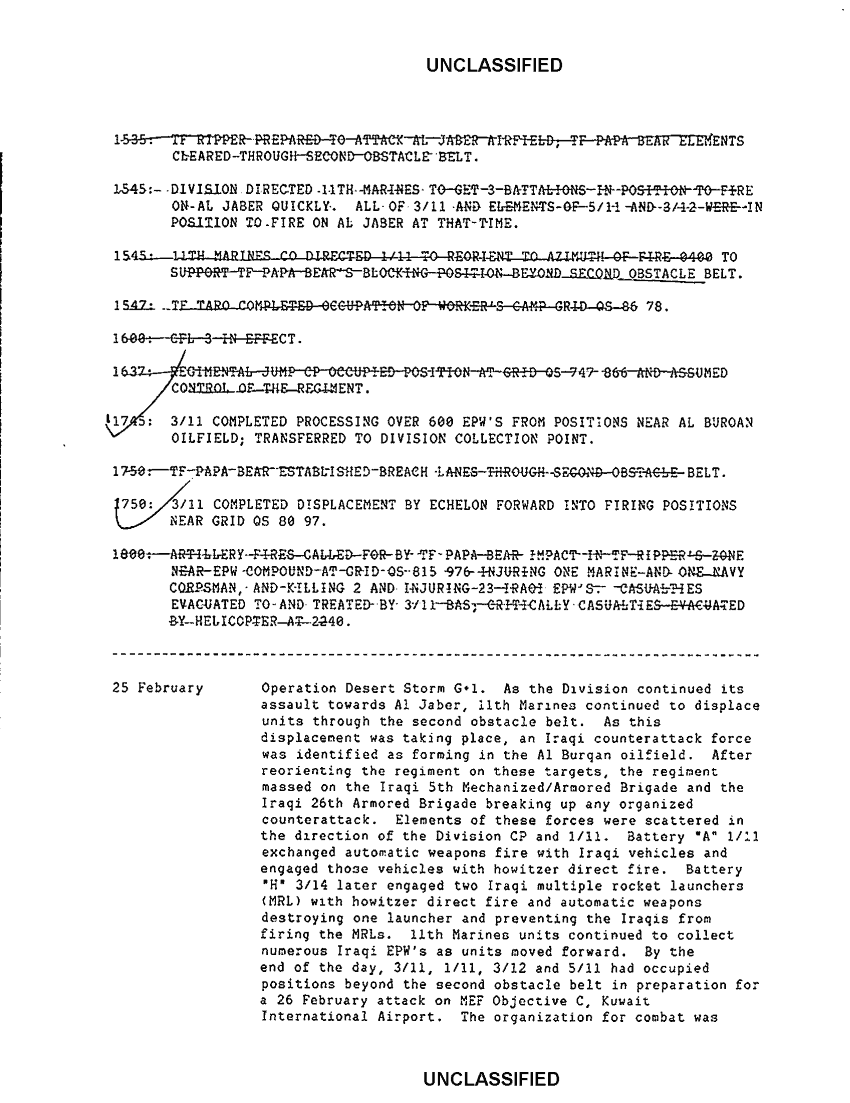 Document 16 f:/Week-42/BX600057/I MEF ACCOUNTS OF COMBAT ACTION/11th marines summary of significant events:1122961652212