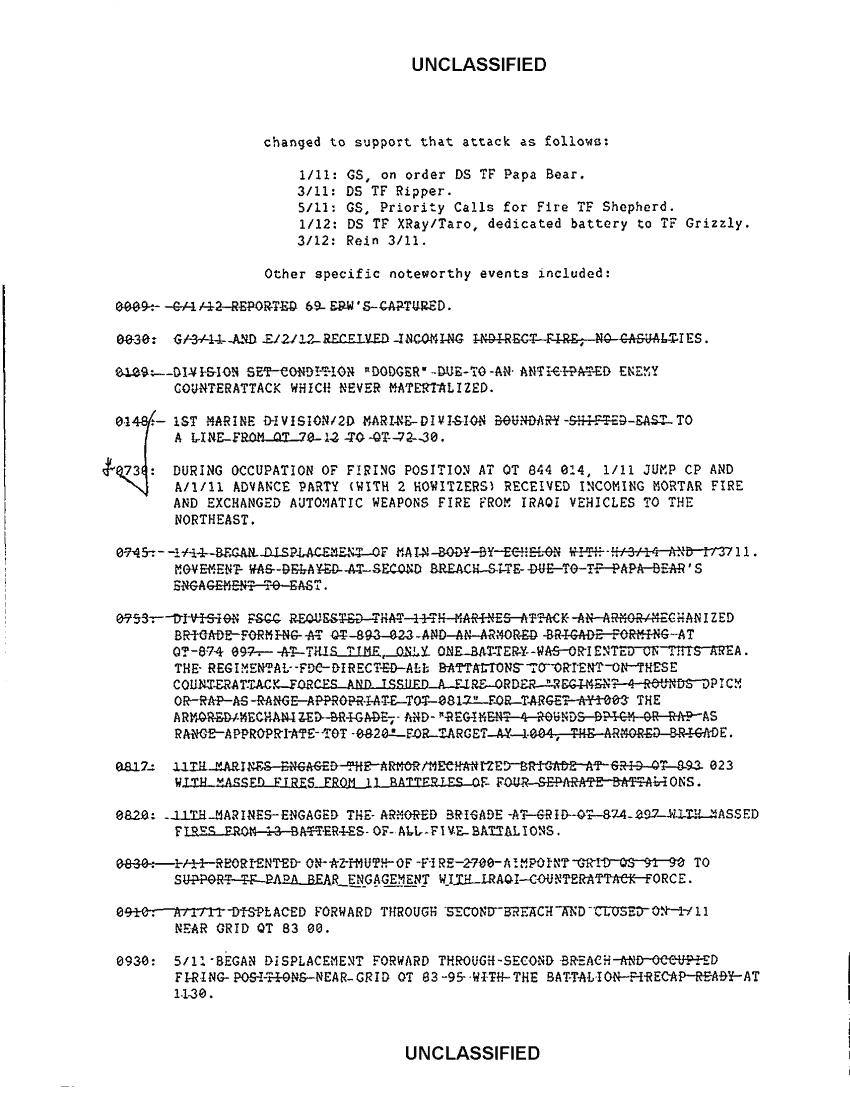 Document 16 f:/Week-42/BX600057/I MEF ACCOUNTS OF COMBAT ACTION/11th marines summary of significant events:1122961652212