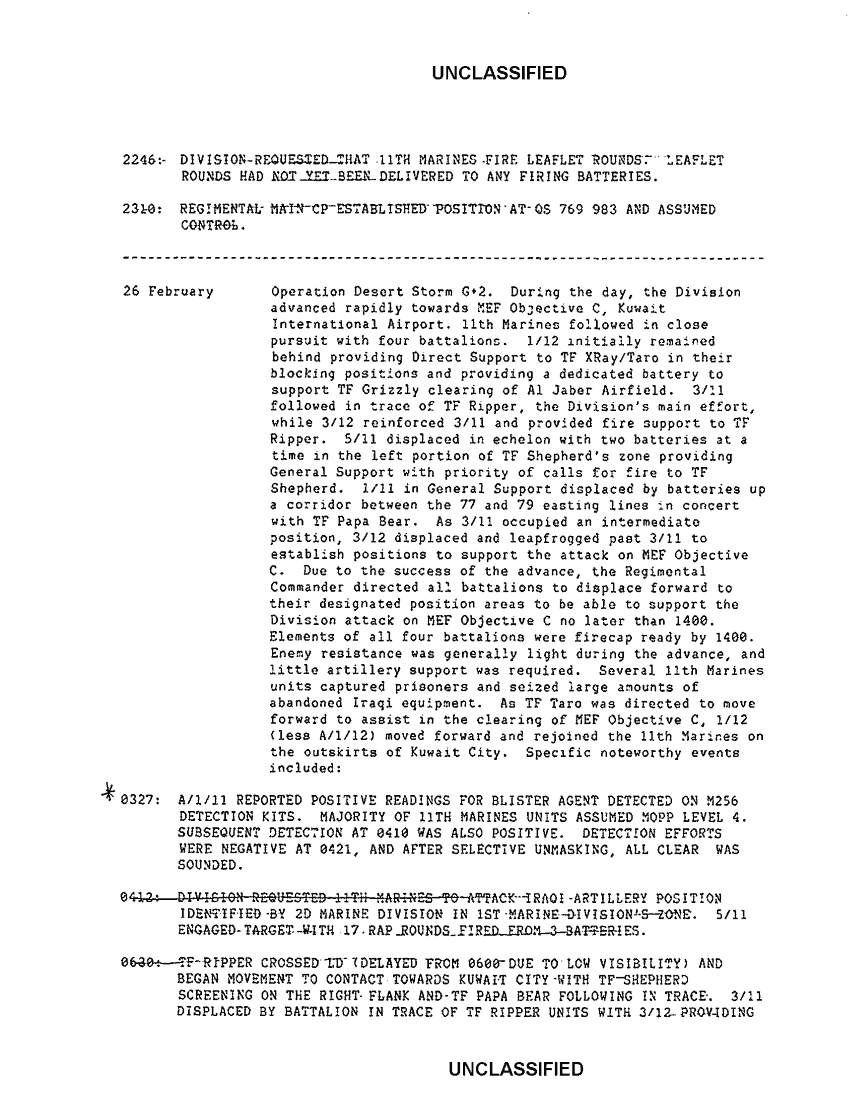 Document 16 f:/Week-42/BX600057/I MEF ACCOUNTS OF COMBAT ACTION/11th marines summary of significant events:1122961652212