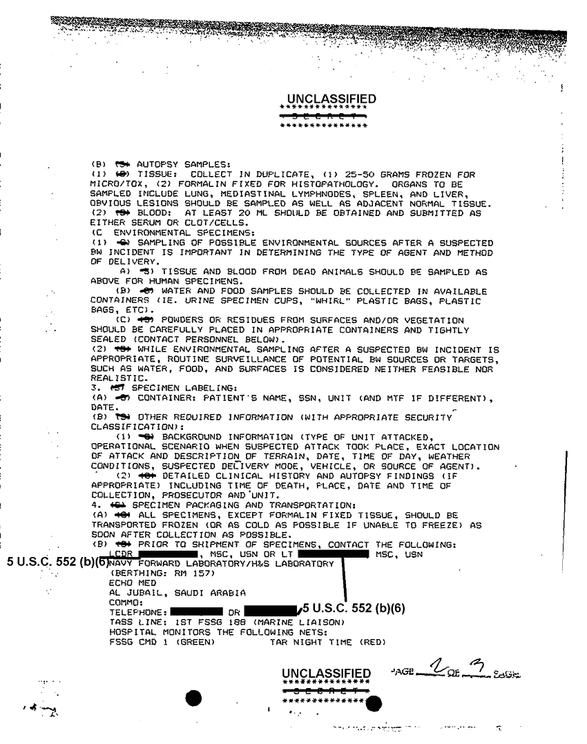 Document 3 f:/Week-42/BX600054/NUCLEAR BIOLOGICAL AND CHEMICAL MESSAGES/collection and transportation of suspected biolo:1112961512484