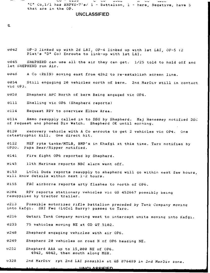 Document 4 f:/Week-42/BX600054/1ST MARDIV SIGNIFICANT EVENTS 29-30 JANUARY 1991/significant events 29 30 jan 1991:1112961512485