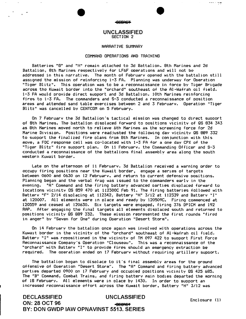 Document 4 f:/Week-42/BX600019/COMMAND CHRONOLOGY 3RD BATTALION 10TH MARINES FEB 1991 2 OF 4/section 2 narrative summary cmd operations and t:11129615125611
