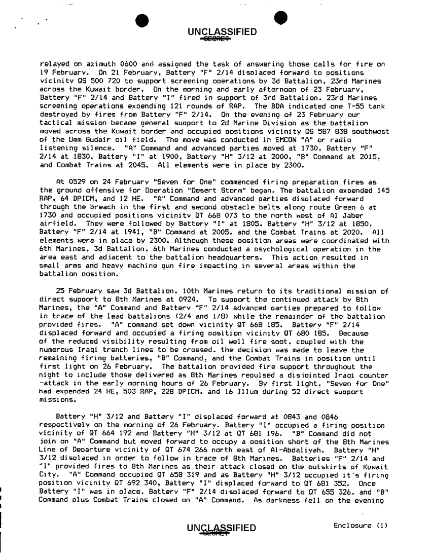 Document 4 f:/Week-42/BX600019/COMMAND CHRONOLOGY 3RD BATTALION 10TH MARINES FEB 1991 2 OF 4/section 2 narrative summary cmd operations and t:11129615125611