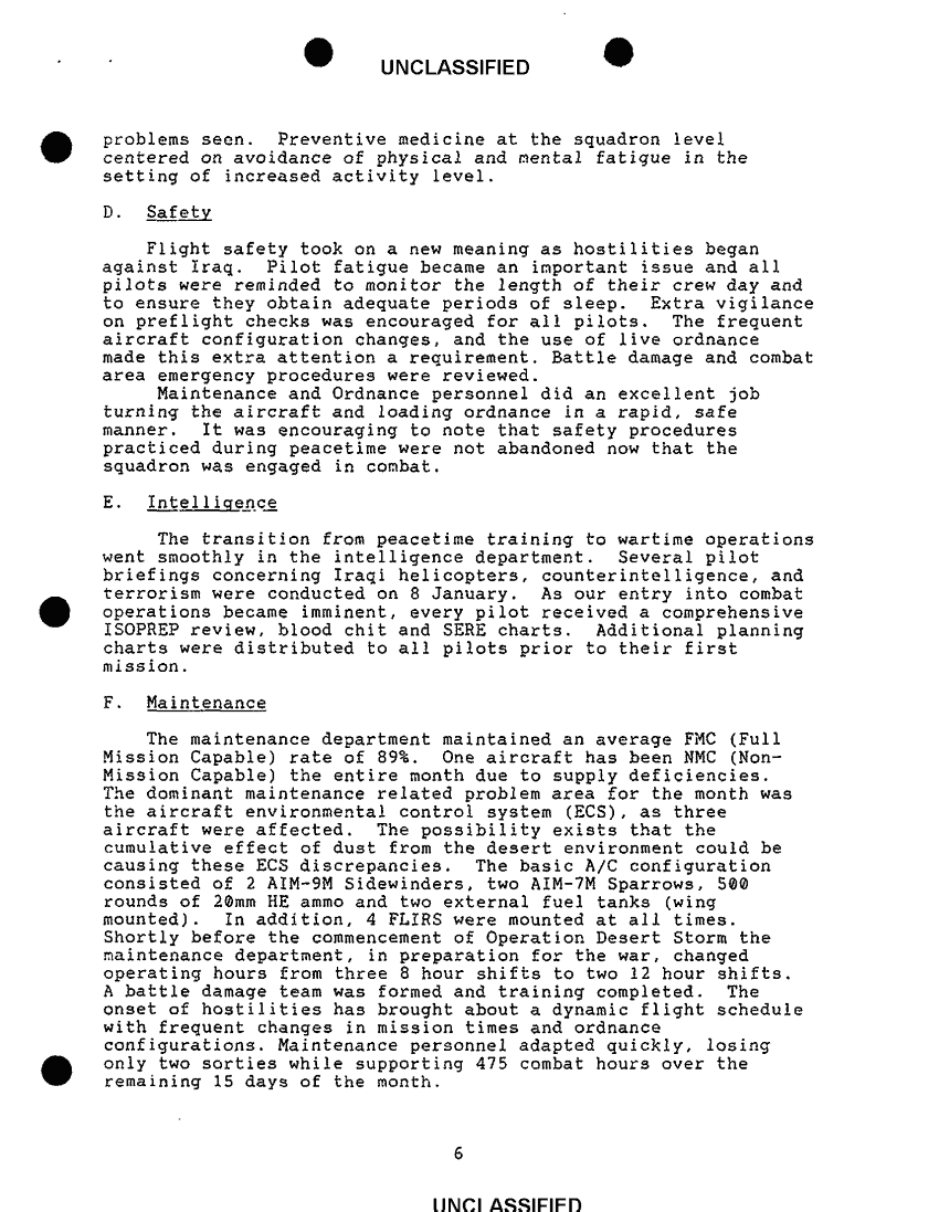 Document 4 f:/Week-38/BX600027/COMMAND CHRONOLOGY VMFA 314 JAN 90 - JUN 91/cmd chronology section ii narrative summary:11229616522914