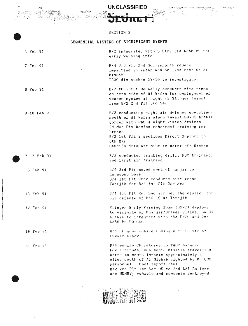 Subject = COMMAND CHRONOLOGY 1 FEB TO 28 FEB 91 2D LAAD BN