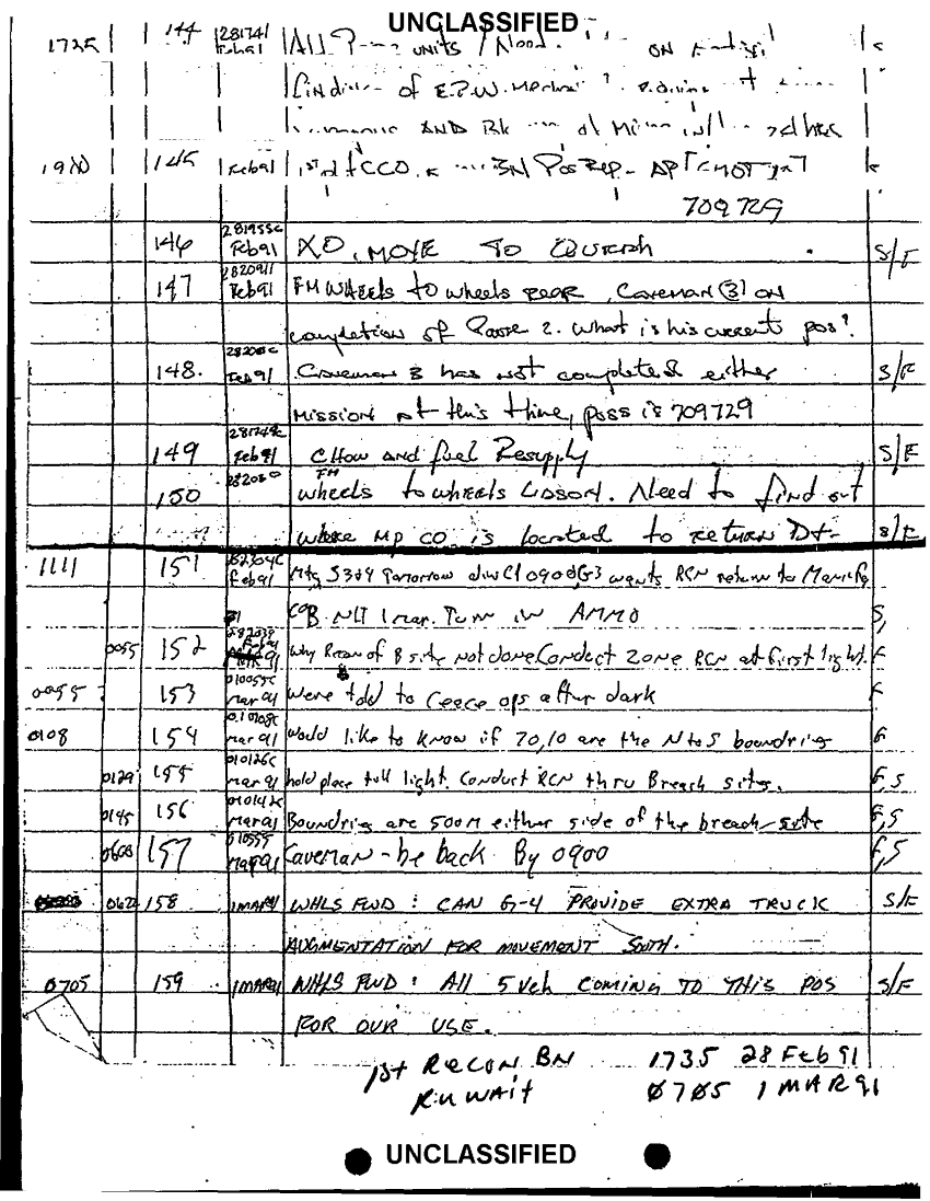 Document 5 f:/Week-38/BX600020/COMMAND CHRONOLOGY 1ST RECONNAISSANCE BATTALION JAN - MAR 1991/1st recon bn journal 28 feb 91:12069615401327