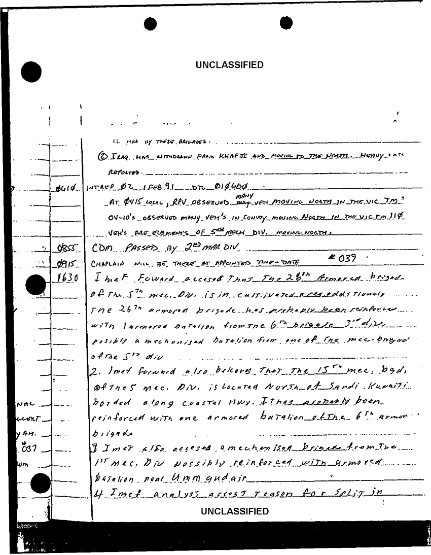 Document 24 f:/Week-42/BX600017/COMMAND CHRONOLOGY RECONNAISSANCE BATTALION JAN - FEB 1991 1 OF 2/unknown watch log 17 jan 91:12179610015023