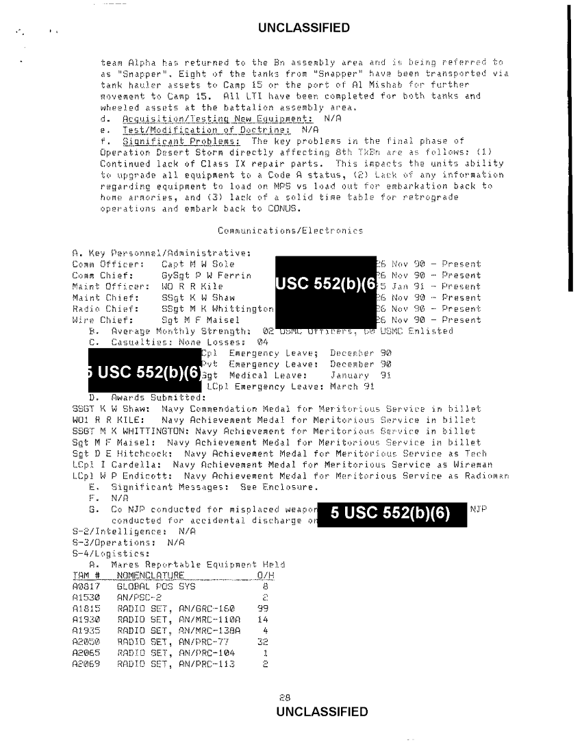 Document 60 f:/Week-34/BX600007/COMMAND CHRONOLOGY 8TH MARINES APRIL - JUNE 1990/8th tank bn command chronology nov 90 to mar 91:01029709504216