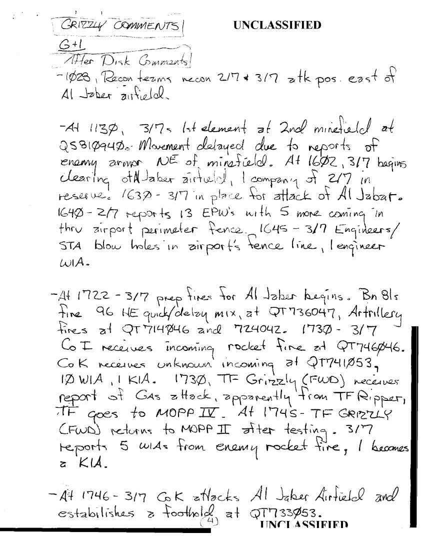 Folder Title = 1ST MARDIV DESERT STORM COMBAT HISTORY NOTES D-3 - D+5