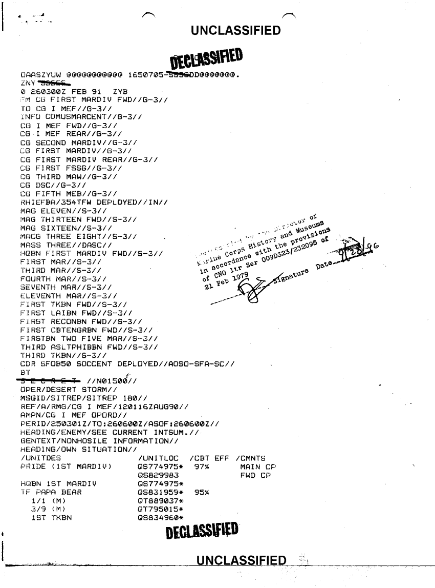 Document 3 f:/Week-41/BX600049/1ST MARINE DIVISION SITREPS 1 JAN - 27 91/sitrep 180 cg first mardiv fwd 26 feb 91:01029709503710