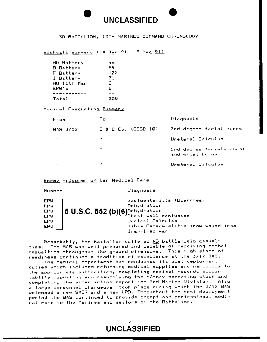 Folder Title = COMMAND CHRONOLOGY 3RD BATTALION 12TH MARINE REGIMENT JAN - JUN 1991