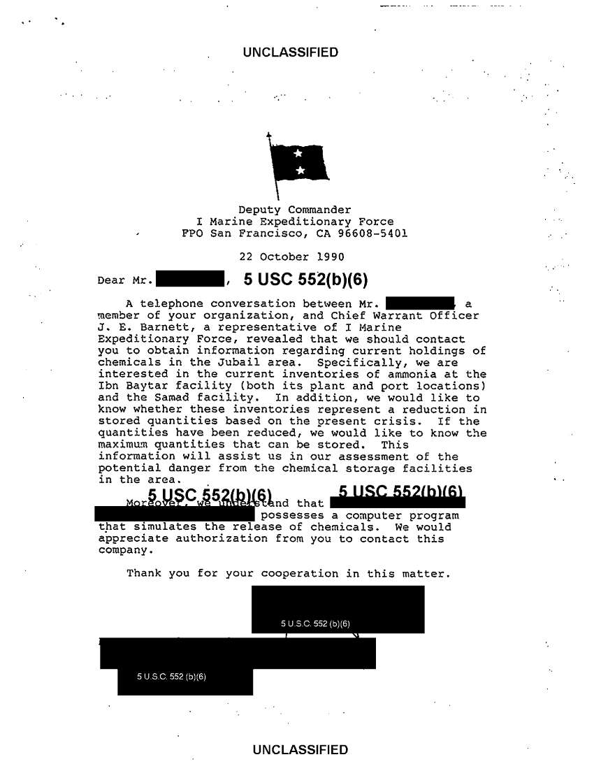 Document 1 f:/Week-38/BX600022/folder 2 industrial chemical threat i marine expeditionary force cna 2386/letter al ayouni 22 oct 90:0102970950337