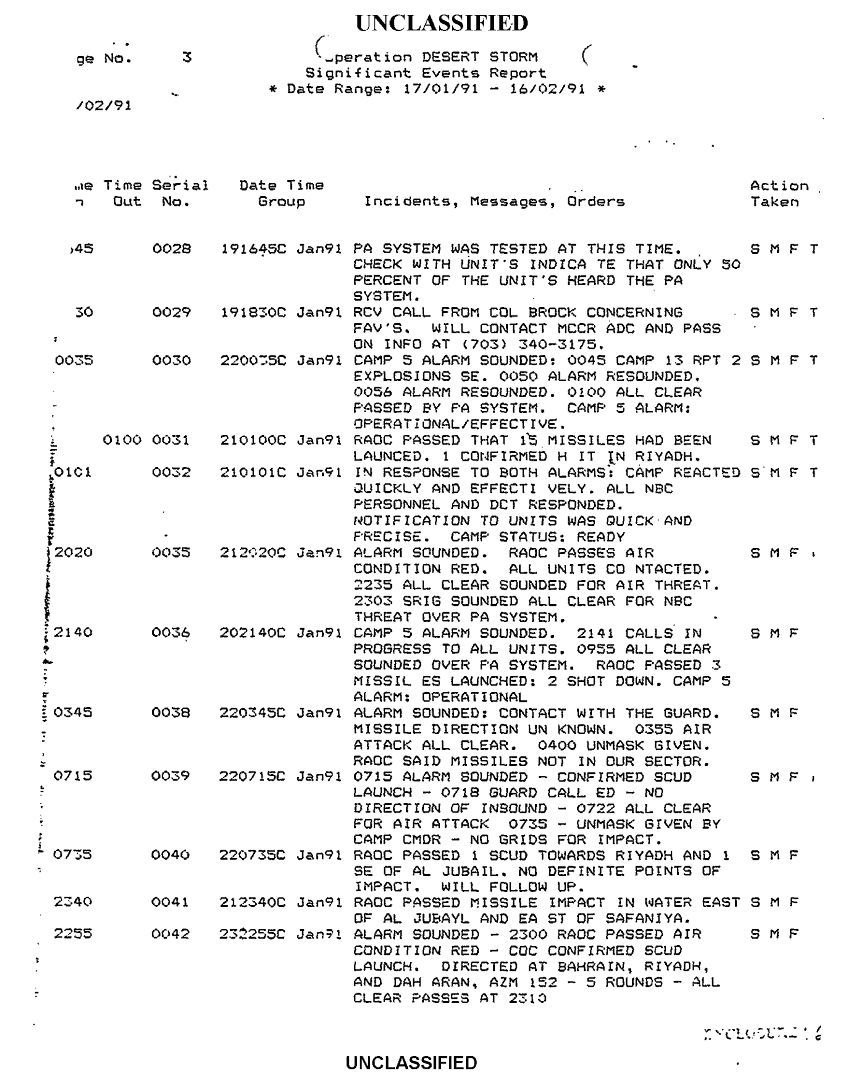 Document 4 f:/Week-38/BX600020/COMMAND CHRONOLOGY 1ST SURVEILLANCE RECON INTEL GROUP JAN 1991 2 OF 2/significant events report 17 jan 91 16 feb 91 d:01029709503711